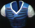 blue, white, and black top