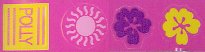 | roll of stickers (one yellow "Polly", eight pink suns, and fourteen purple and yellow flowers) |