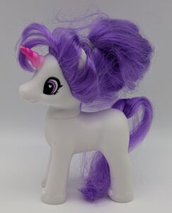Sparklicious is a large talking pony that comes with spoons of food you can “feed” her. She is 9″ tall. In box photo from wsrb-cpa.xyz.