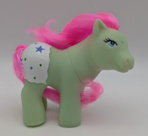 The blue one has been found in a simple plastic bag package, distributed by Toysmith, Item #98348 Precious Ponies: