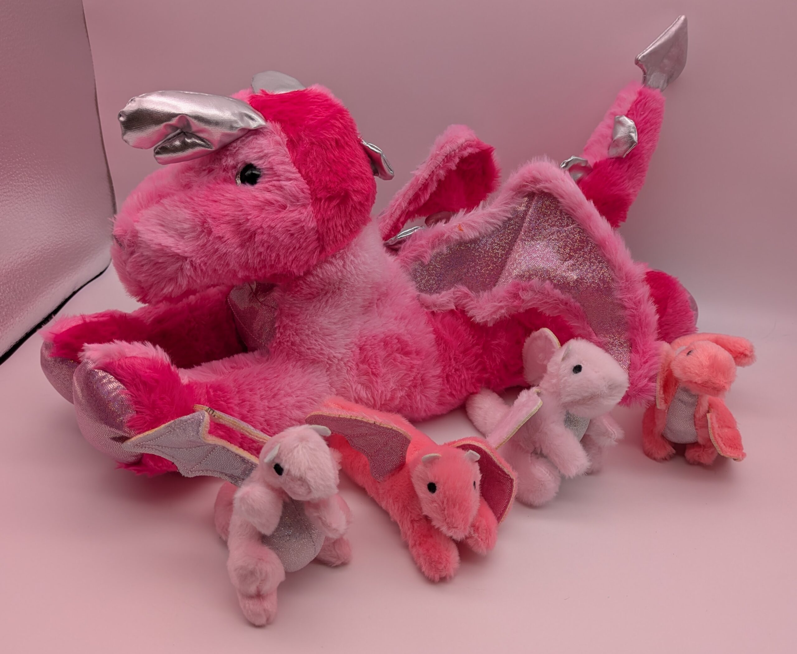 This is a mommy and baby dragons in the style of Puppy Surprise. The mommy has a belly pouch that holds the babies. They are about the same size as Puppy Surprise.