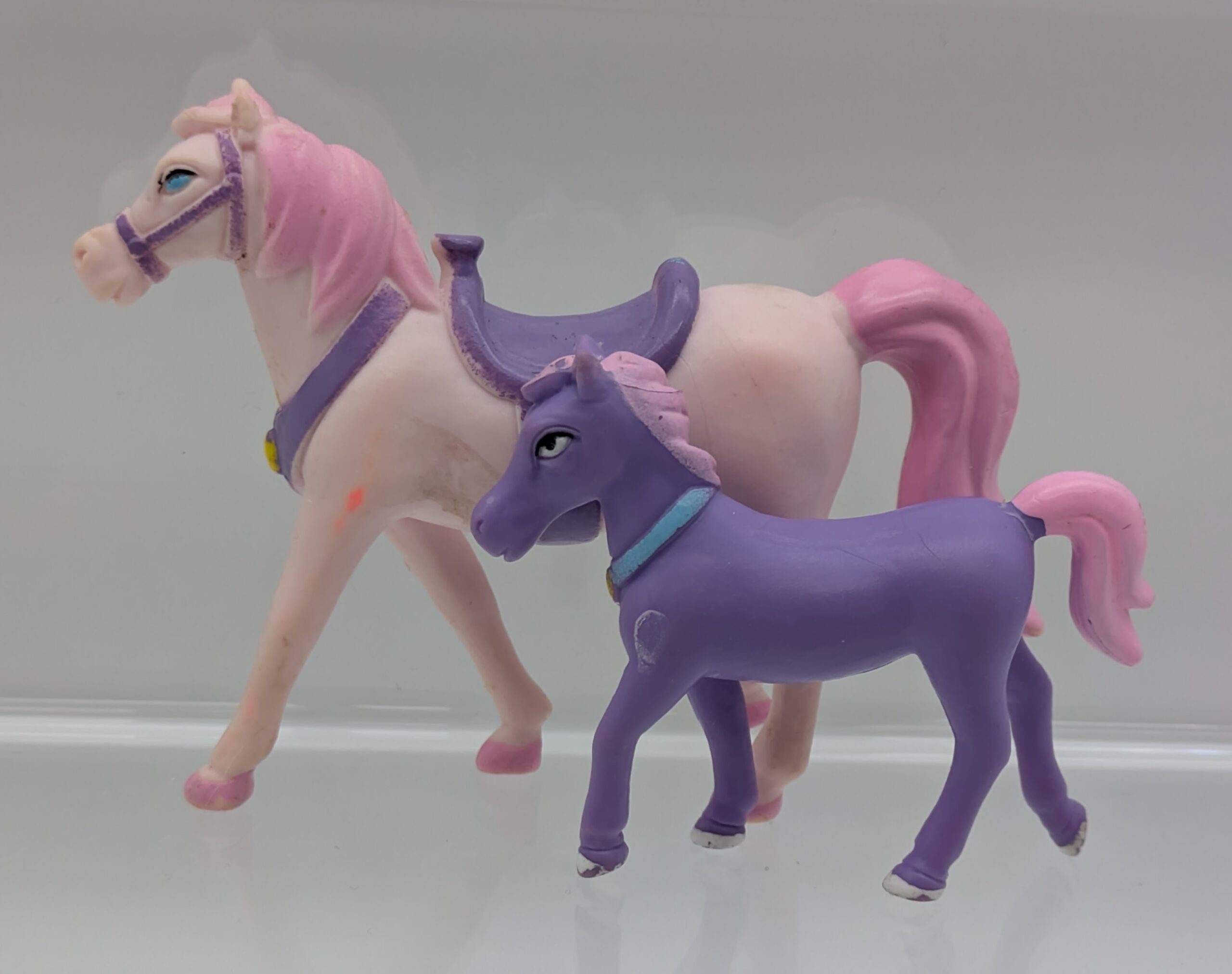 Mommy & Baby Pony w/ Molded Neckbands Posted on December 23, 2025December 23, 2025 by Fakie Spaceman No markings. The adult is 2″ tall and the foal is 1.5″.
